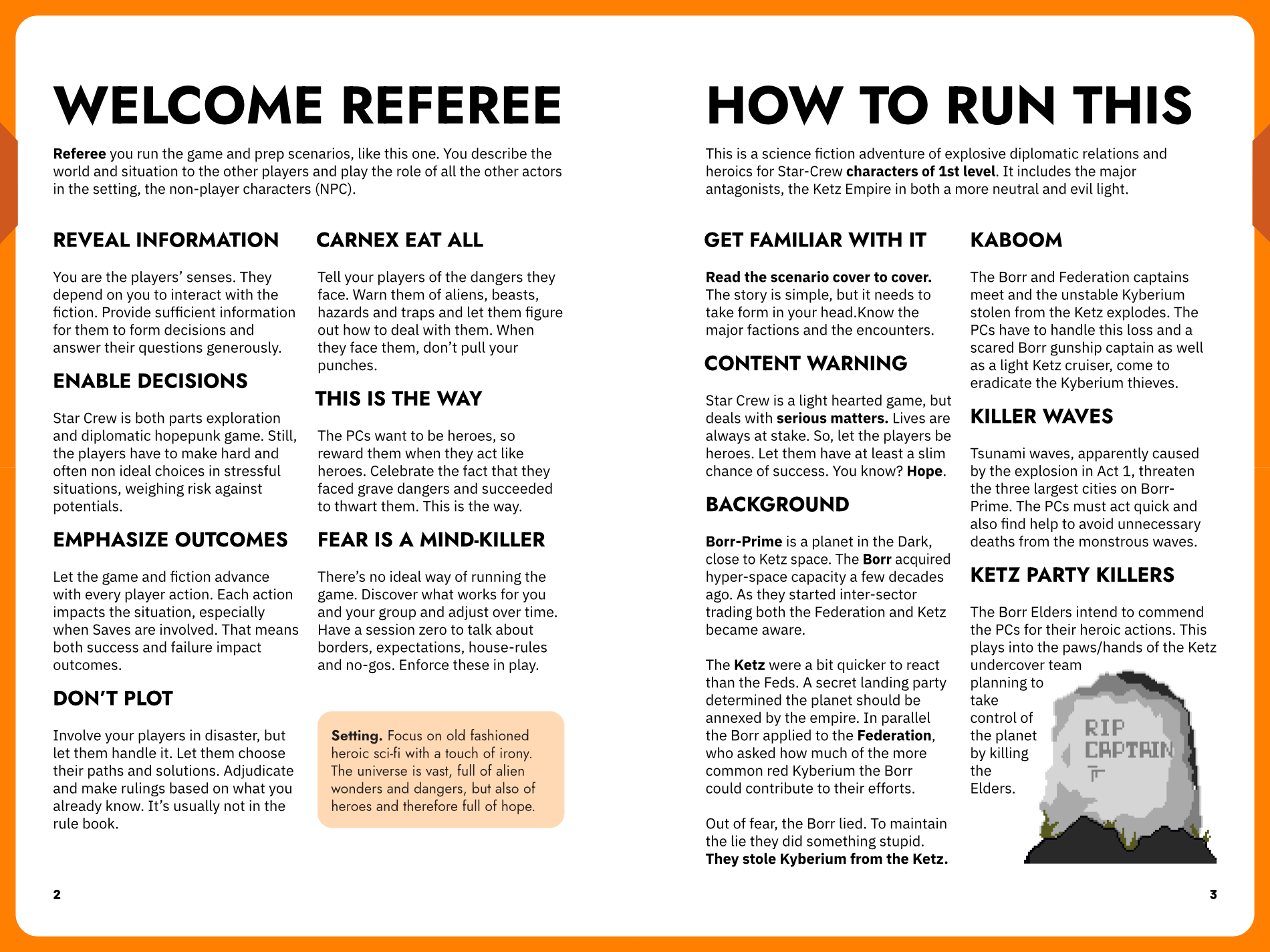 - Our signature quirky Pixel art across all spreads, reinforcing that where other games are grimdark, Star-Crew is light-hearted, fun, hopeful